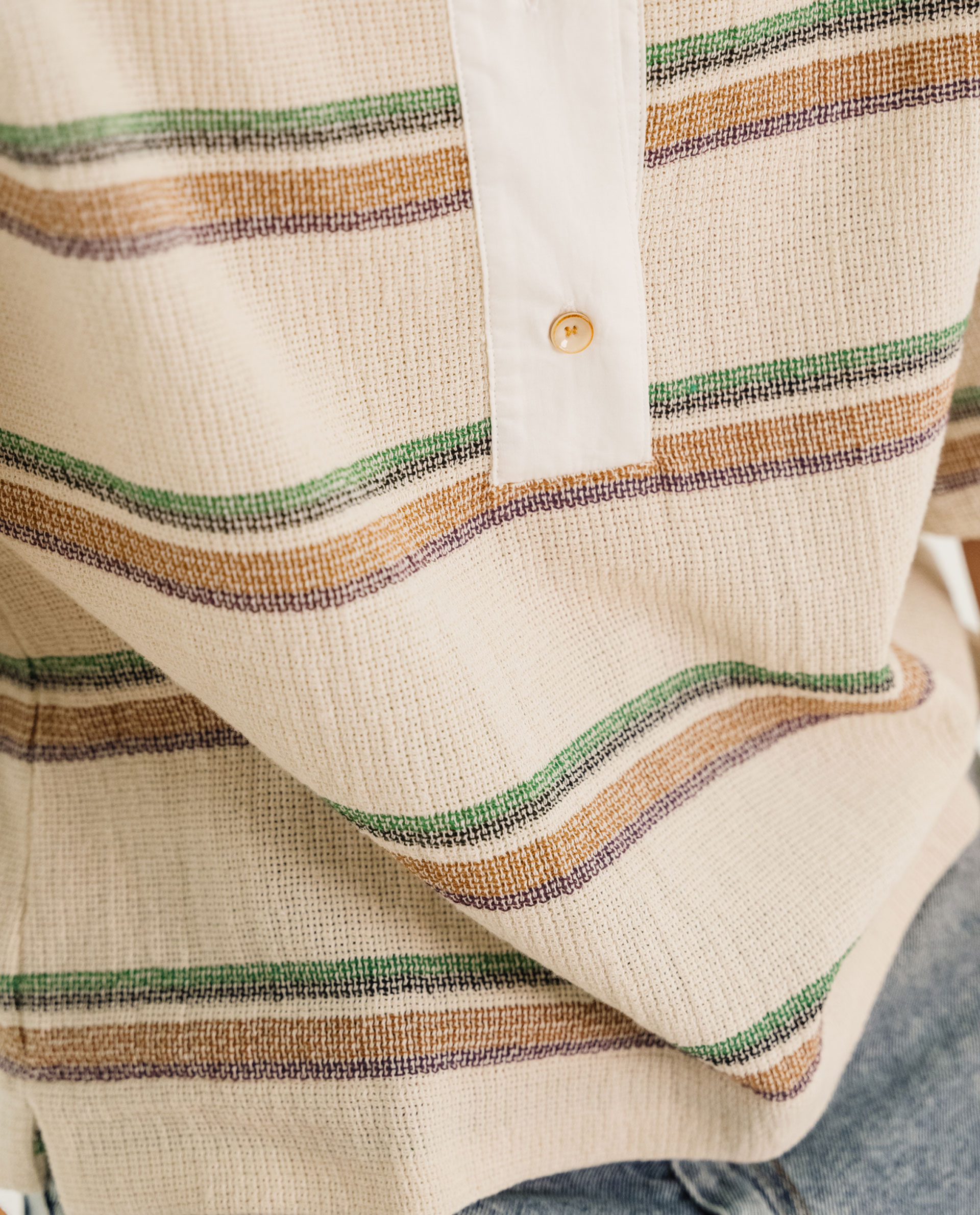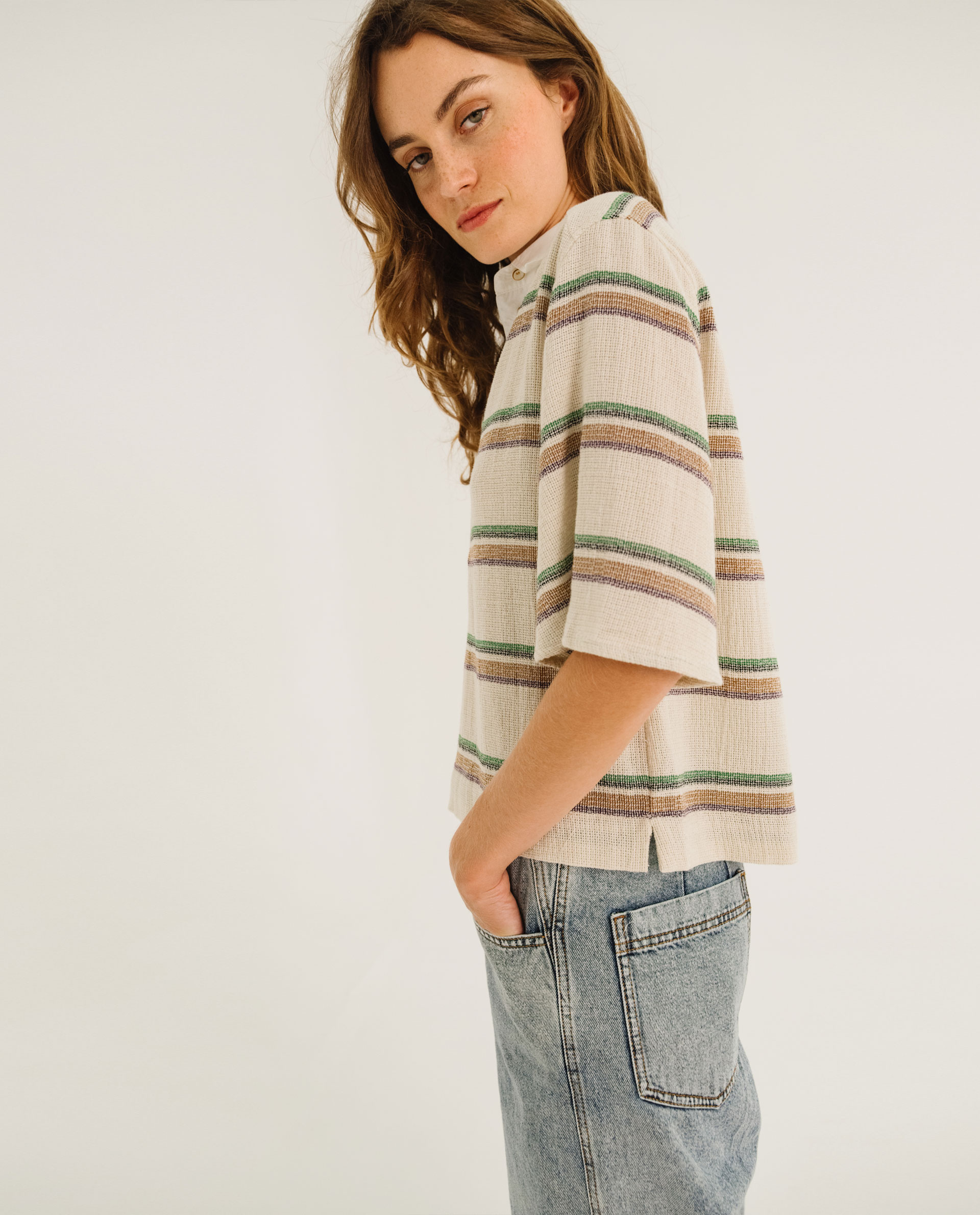 EMILE est coupée dans un coton rayé et armuré au look vintage, tissé en Italie.