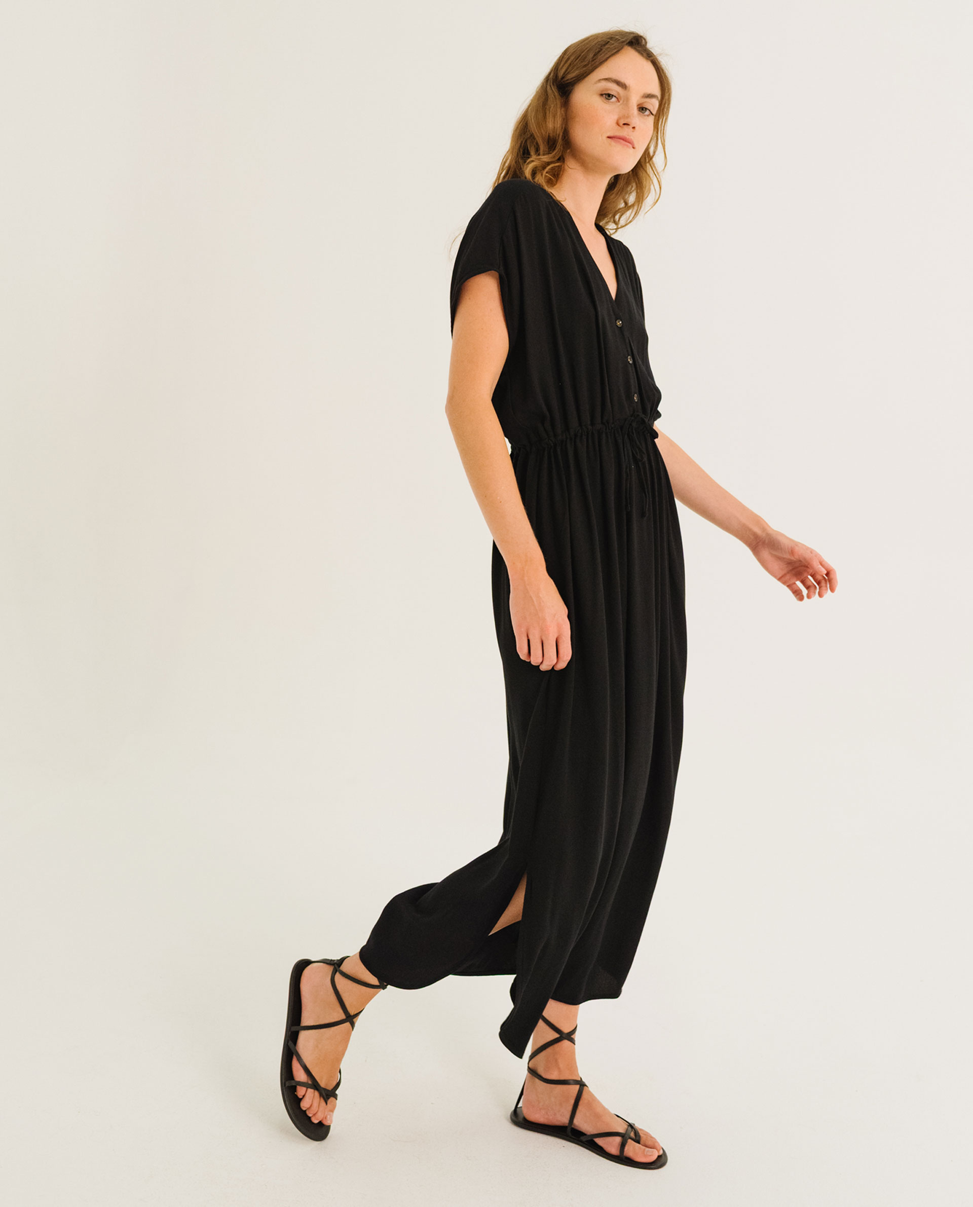 ELISE est coupée dans un crêpe de viscose fin, fluide et féminin.